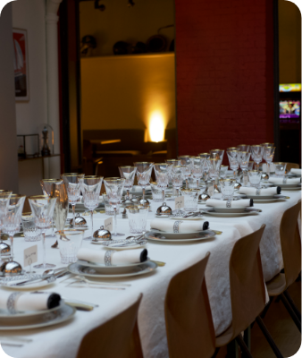 Nous accueillons uniquement des évènements professionnels en semaine mais proposons une offre exclusive pour les particuliers le week-end sous forme de Dîner des Grands Artisans. Un format pouvant accueillir jusqu’à 15 personnes  autour de produits d’exceptions dans un cadre intimiste.